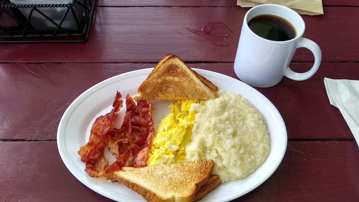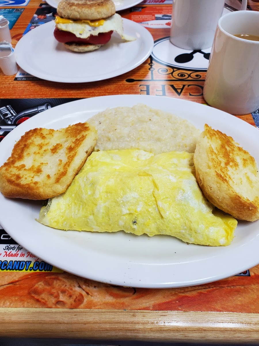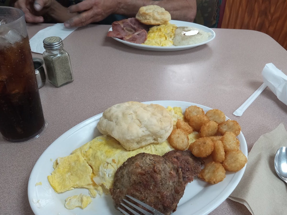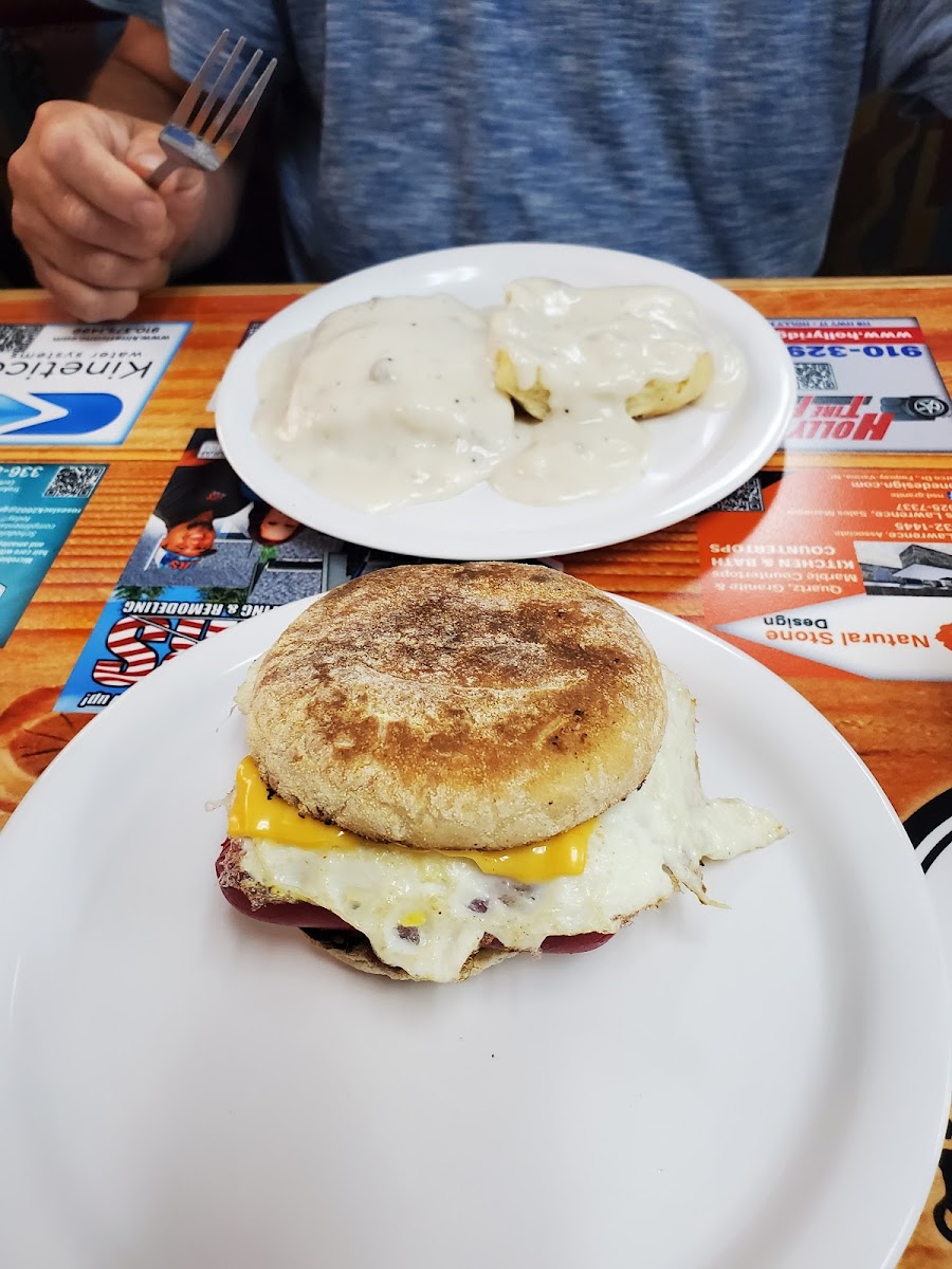 This was my first time here! I stopped by on my way to do a roof inspection so I didn't have time to sit down and eat and they can do to go orders! The front desk ladies were so sweet, helped me browse the menu and recommended some of their favorites and we ended up building a breakfast burrito with 2 eggs, onion and peppers and perfectly salted country ham. It was delicious and very easy to eat in the truck on the go because they wrapped it nice and tight and cut it in half so it wasn't a messy experience! I loved their chocolate milk, they mix it themselves and it reminds me of my childhood mixing Hershey syrup in milk. It doesn't have that weird artificial taste to it and really hits the nostalgic spot! The staff was so kind and seemed to take great care of everyone there and they pay attention to their customers because a couple different staff members complimented my black and green nails that match my Maven Roofing work truck! I thought that was so sweet! This place has a very southern homey mom and pop feel to it and I loved the vibe!