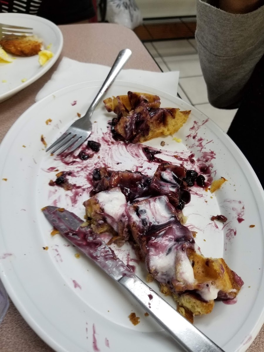 My wife and I always enjoy our breakfast here. My wife had the western omelet and toast. She said it was delicious. I had scrambled eggs , potatoes, grits and cheese and French Toast and it was delicious.
